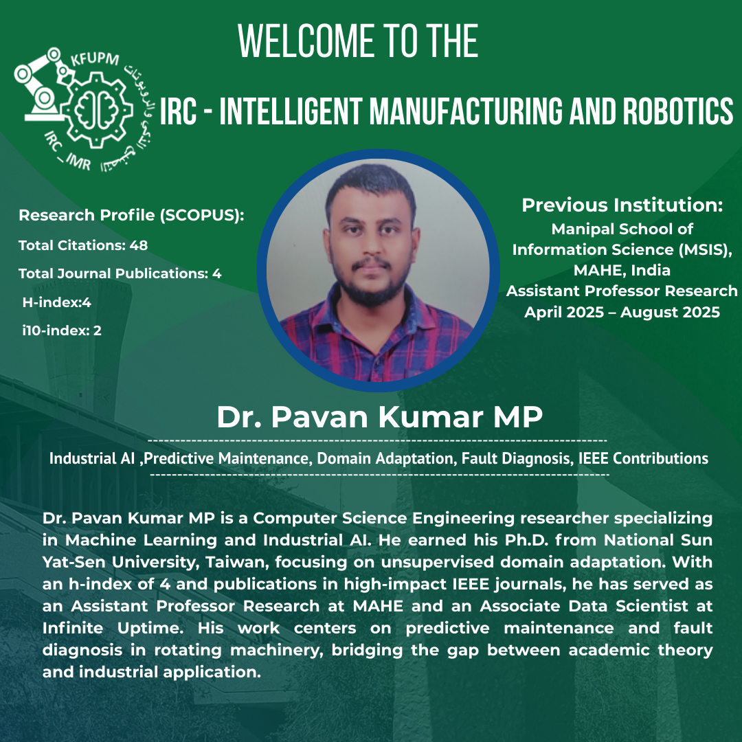 IRC - Intelligent Manufacturing and Robotics Welcomes Dr. Pavan Kumar M P as Postdoctoral Researcher