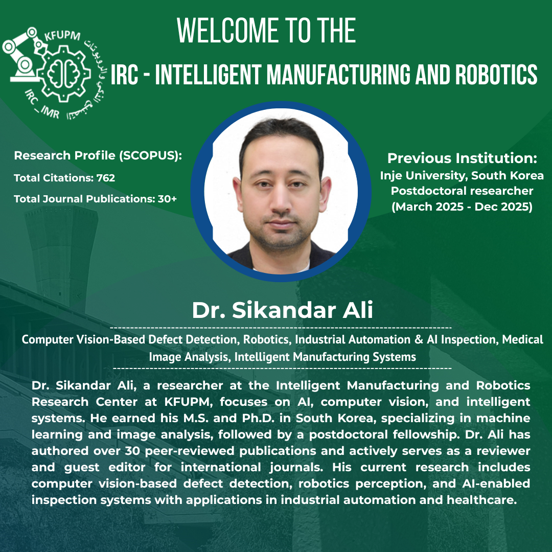 IRC - Intelligent Manufacturing and Robotics Welcomes Dr. Sikandar Ali as Postdoctoral Researcher